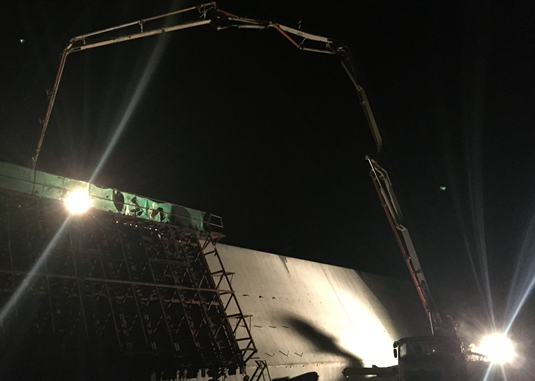 2015年5月24日,公司承建的茂名港博贺新港区粤电煤炭码头工程防波堤项目挡浪墙分项工程顺利完成全部浇筑任务。在公司的关心和支持下,该项目部全体成员,齐心协力克服海况、天气等不良影响,昼夜施工,历时近五个月,在台风期到来前,按质按量顺利完成了全长843.5米挡浪墙施工任务,共浇筑混凝土浇筑31378方。为后续工序及按期完成项目施工打下坚实基础。