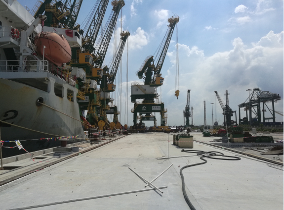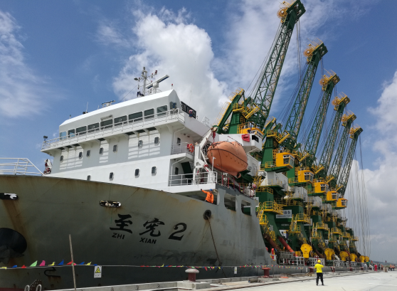 2016年6月18日,载有6台门坐式起重机的大型运输船成功靠泊在广建公司承建的东莞市虎门港沙田港区西大坦作业区驳船码头工程3#泊位,6台起重机将在6天内陆续卸载至3#泊位并进行安装调试,这标志着该项目部顺利完成业主要求的又一重要节点工期,也是本工程最后一个重要施工节点,为按期圆满完成本工程奠定了坚实的基础。同时,也为业主方尽快投产创造了有利条件。