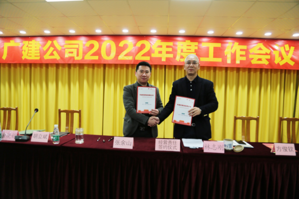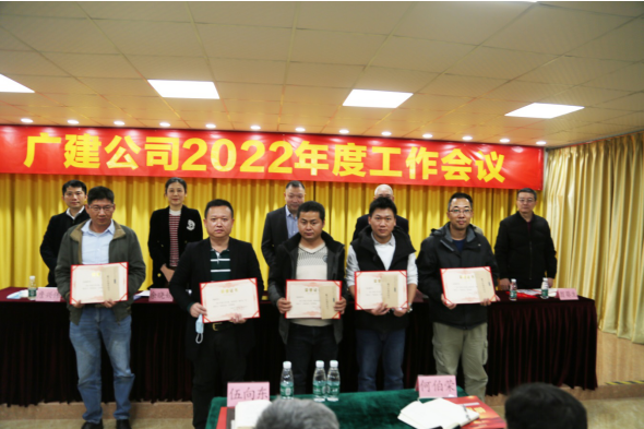 胡立斌在讲话中指出,2021年企业改革发展、生产经营管理等工作取得优异成绩,全面完成年度目标任务,实现了“十四五”规划起好步、开好局的目标,彰显了广建人的使命担当。2022年,公司要以习近平新时代中国特色社会主义思想为指导,全面贯彻党的十九大、十九届历次全会及集团年度工作会议精神,认真贯彻落实集团各项工作部署,把握好双循环战略下国企提质增效升级的机遇,向改革要动力,向市场要效益。重点抓好以下五个方面的工作:一是抓经营,创新体制机制,不断扩大业务规模;二是搭平台,建立为企业做贡献、与企业共发展的企业文化;三是调结构,持续优化业务、组织、人员、薪酬等工作的结构体系;四是防风险,做好安全、质量、资金、合同等风险防范工作;五是强党建,坚持和加强党的全面领导,实现党建与企业高质量发展同向聚力。