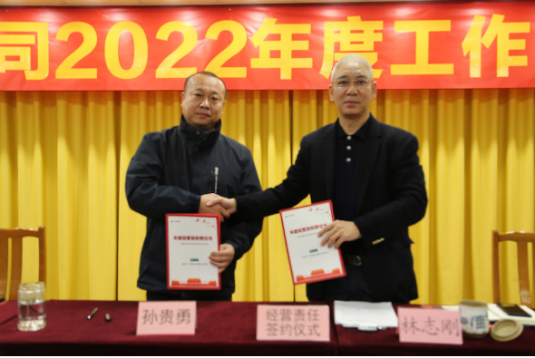 会议还对2021年度先进集体和先进个人进行了表彰,总经理与经营部门负责人分别签订了2022年度经营目标责任书。